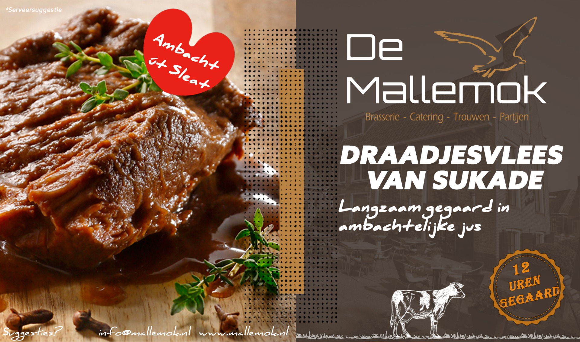 Draadjesvlees van sukade. 12 uren langzaam gegaard in eigen jus. Te bestellen voor supermarken, prijzen op aanvraag.
